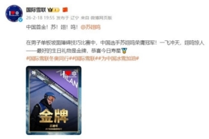 下一篇: 国际雪联祝贺苏翊鸣:最好的生日礼物是金牌,恭喜今日寿星
