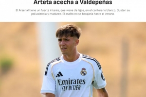 阿斯:阿森纳有意皇马小将巴尔德佩尼亚斯,但皇马并不打算出售他